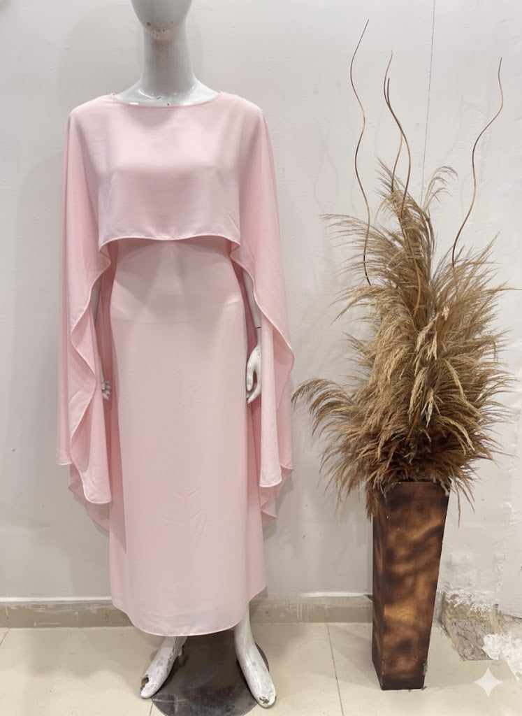 • Sleeves: Cape sleeves that create a dramatic yet elegant flow.