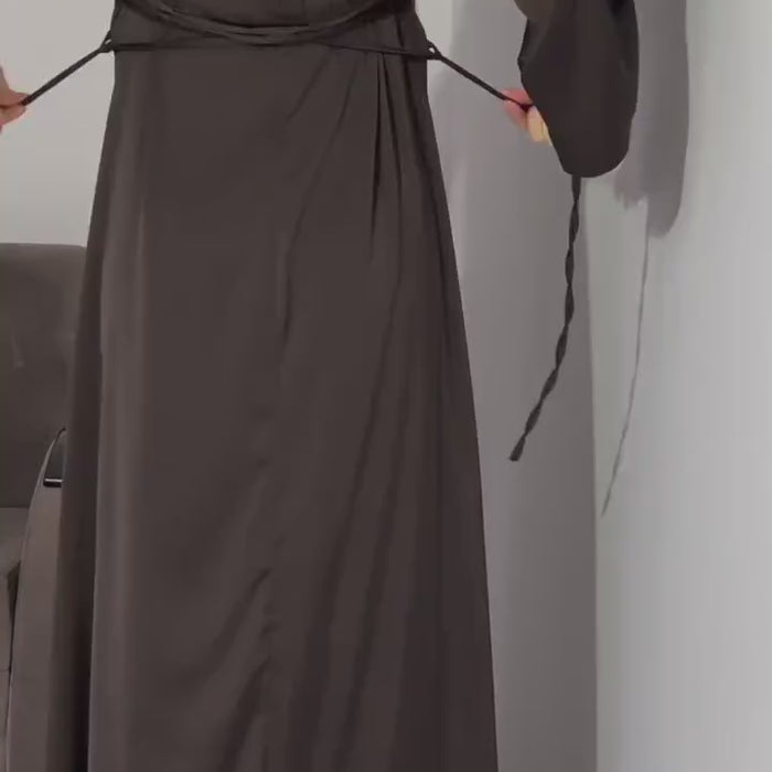 CHOCOLATE BROWN Silk Adjustable Bodycon Maxi Dress – Elegant Silky Fit with Custom Waist Design