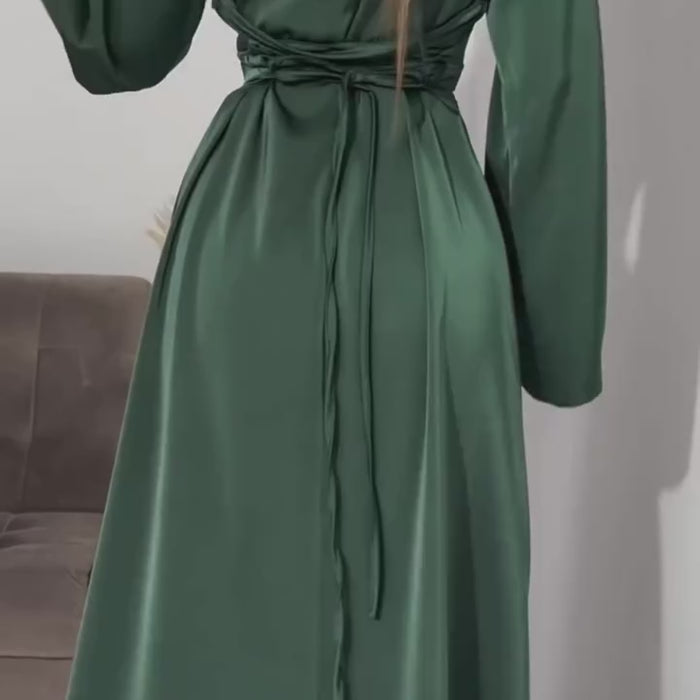 DARKGREEN Silk Adjustable Bodycon Maxi Dress – Elegant Silky Fit with Custom Waist Design - Dark green / Small