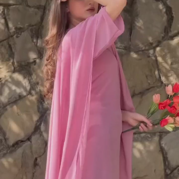 Step into sophistication with our Cape Shawl Dress, a stunning fusion of timeless modesty and contemporary style. Designed with a flowing cape overlay that mimics the elegance of a shawl, this dress offers both comfort and drama in every step.