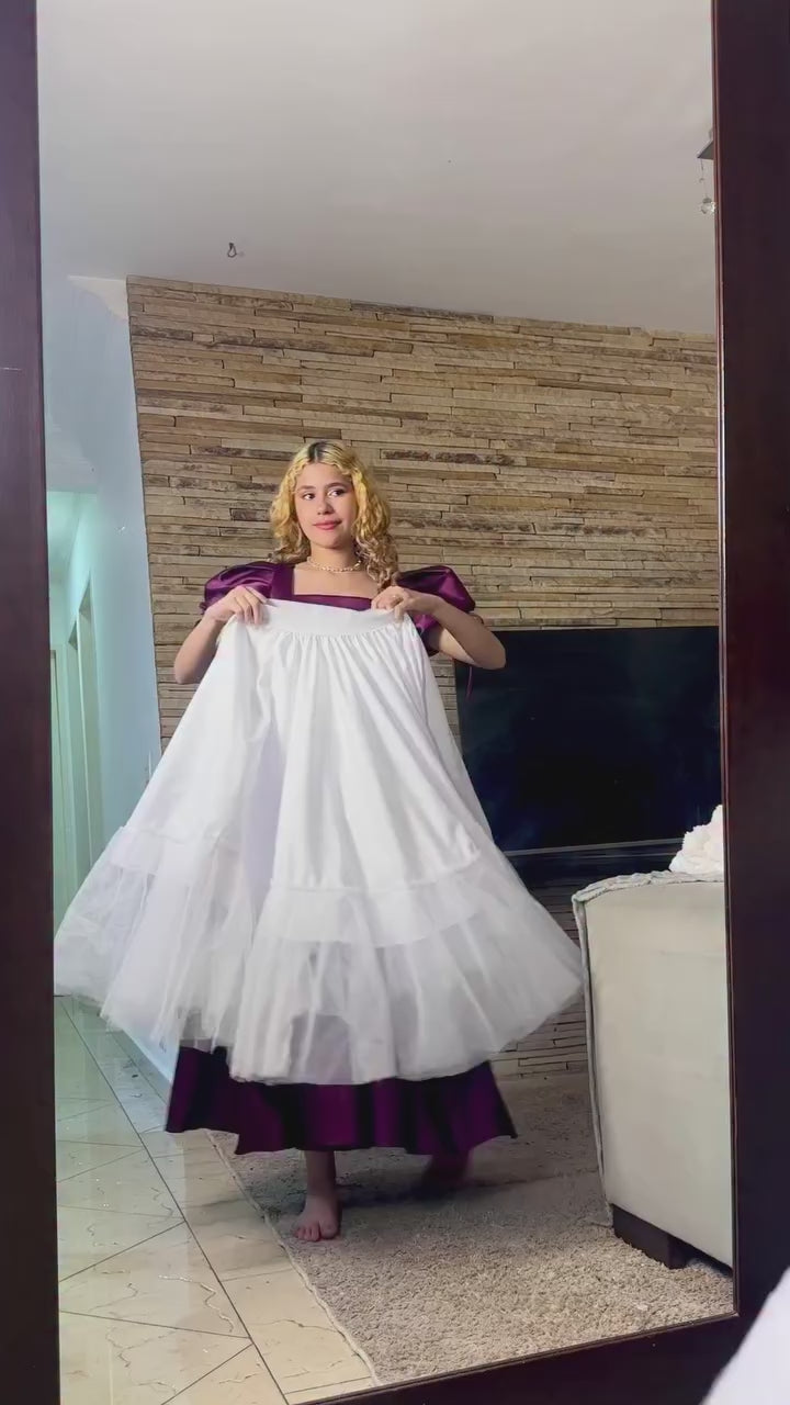 Built-in Can-Can: The full skirt is supported by a structured can-can underskirt (or netting/tulle lining) to create a dramatic, voluminous, and perfectly flared shape, ensuring maximum impact with every step.